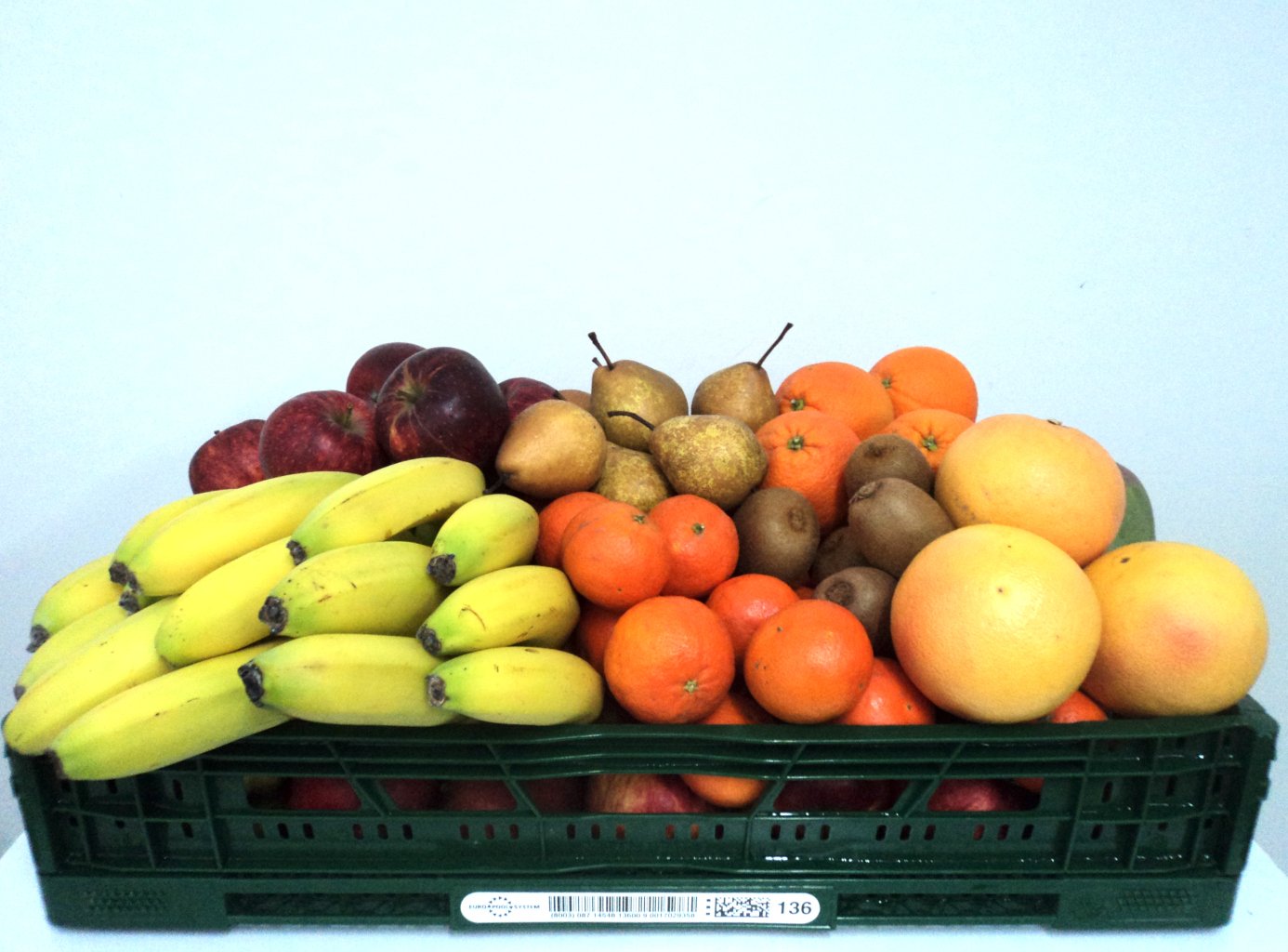 Unsere Obstkiste enthält fünf verschiedene Sorten Obst und die Mengen berechnen wir pro Woche pro Mitarbeiter. So sind Äpfel und Bananen standardmäßig enthalten, die anderen Sorten wechsel je nach Saison.
