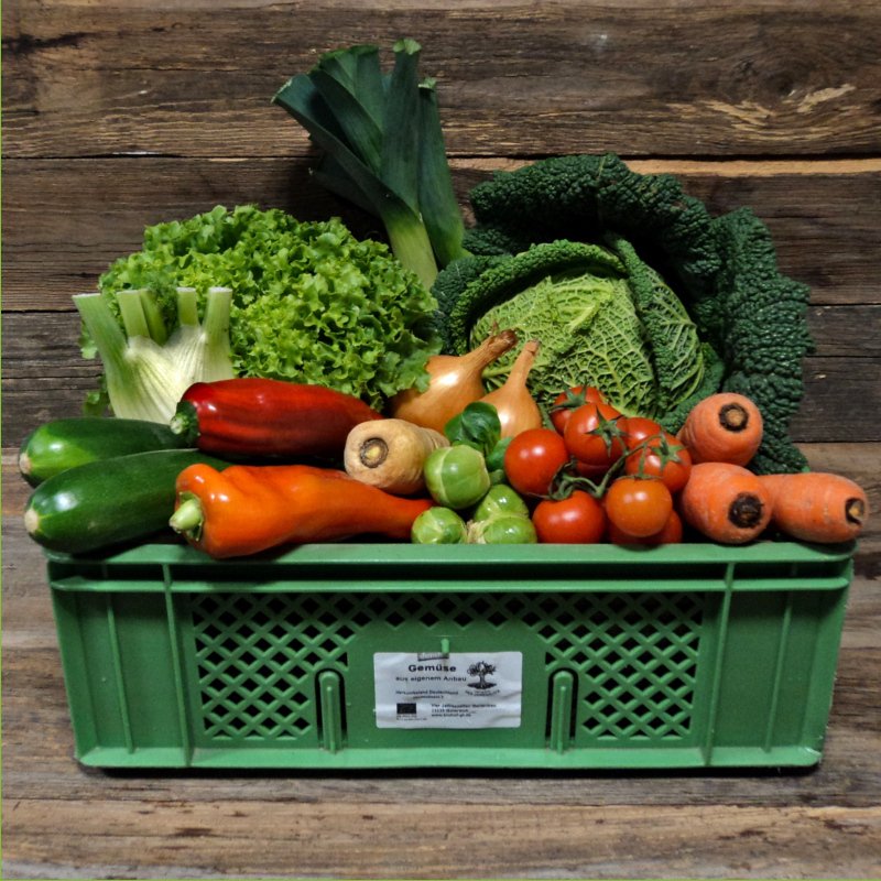 Dieses Abo beinhaltet eine Zusammenstellung von sieben verschiedenen Stück Gemüse und variiert wöchentlich. Die geplanten Mengen sind für eine große Familie vorgesehen.